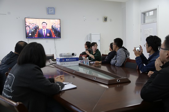 中国共产党第十九次全国代表大会于10月18日上午在人民大会堂开幕。习近平总书记代表第十八届中央委员会向大会作了题为《决胜全面建成小康社会夺取新时代中国特色社会主义伟大胜利》的报告。船舶工程系组织系内老师集中收看学习开幕会直播。