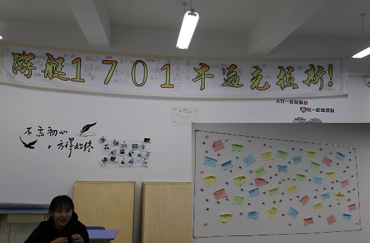 此次活动,每位同学都参与了进来,为班级文化建设贡献自己的想法。同学们在各班班长的组织下用课余时间给班级贴上墙纸,气球,自己写的书法等,还有些班级把班里的学生的照片以及学生们的一句话展示出来。教室布置的整齐有序,各有各的特色,充分体现了各班的精神风貌。