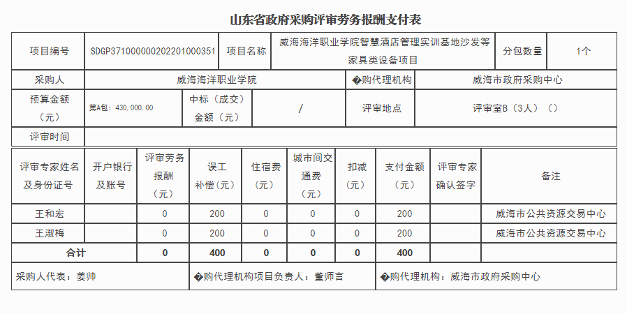 威海海洋职业学院智慧酒店管理实训基地沙发等家具类设备项目竞争性磋商废标公告