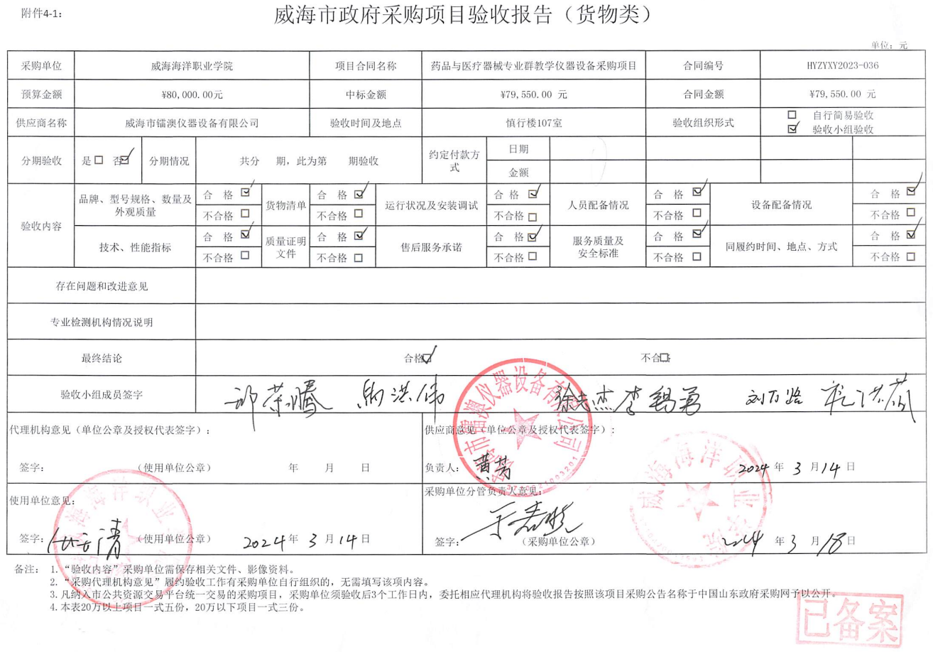 一、合同名称:药品与医疗器械专业群教学仪器设备采购
