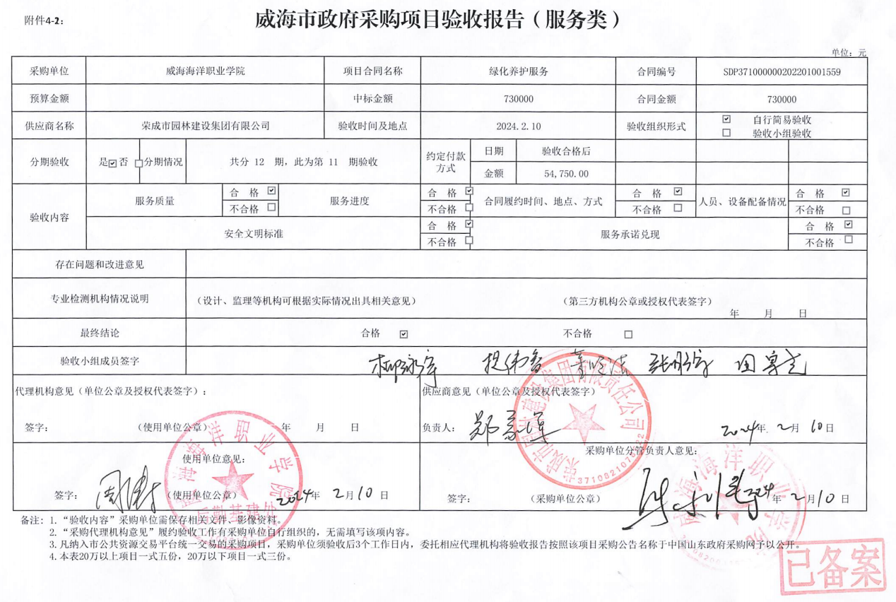 三、供应商名称:荣成市园林建设集团有限责任公司