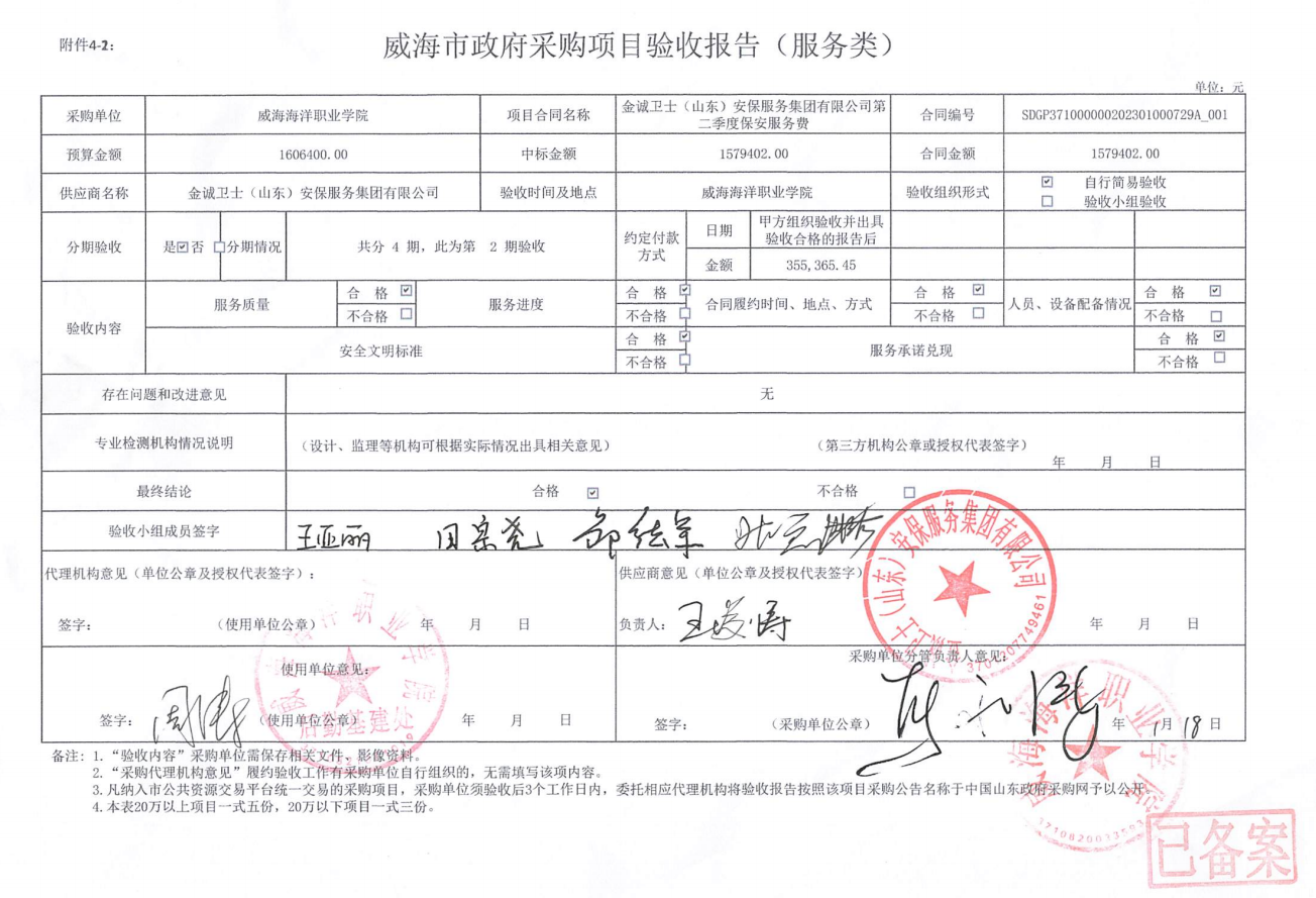 三、中标单位:金诚卫士(山东)安保服务集团有限公司