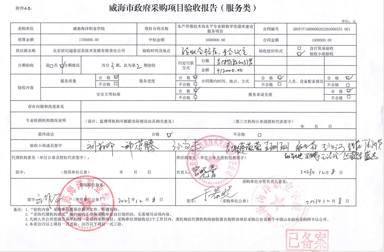 一、合同名称:水产养殖技术高水平专业群教学资源库建设服务项目
