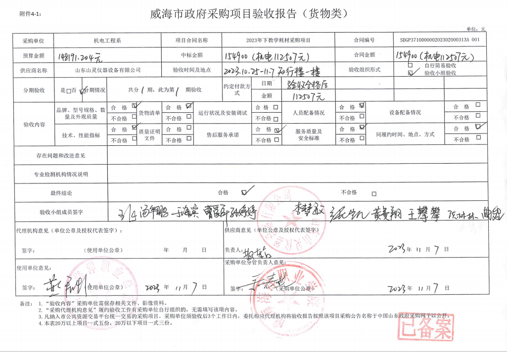 一、合同名称:2023年下教学耗材采购项目——机电电子类教学实训耗材