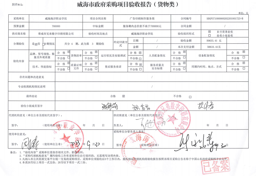 三、供应商名称:荣成市兄弟数字印刷有限公司