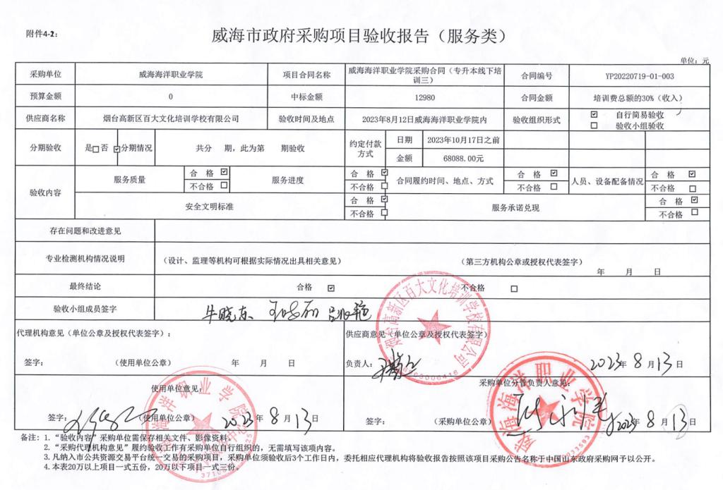 三、供应商名称:烟台高新区百大文化培训学校有限公司