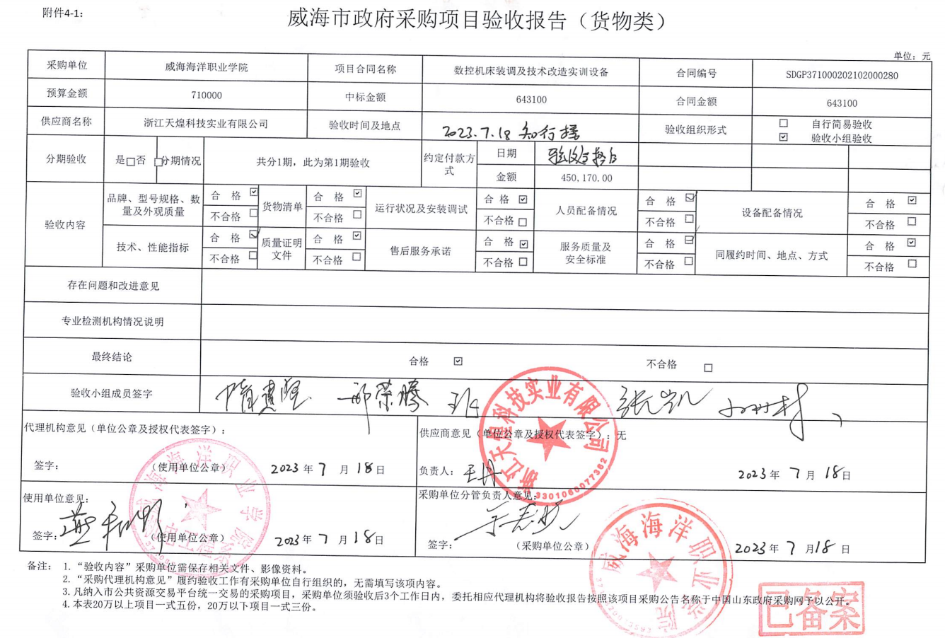 一、合同名称:数控机床装调与技术改造实训设备项目
