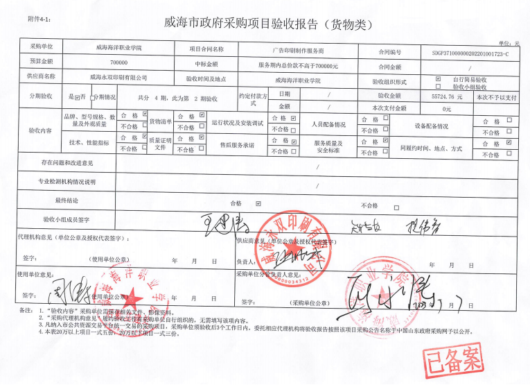 三、供应商名称:威海永双印刷有限公司