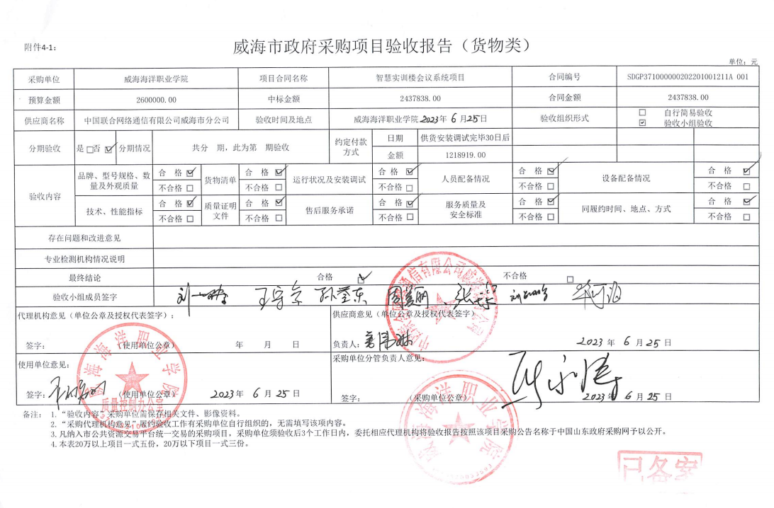 七、验收小组成员名单:姜伟琳、刘世臻、王守金、孙誉东、周美丽、张琛、刘昌鹏