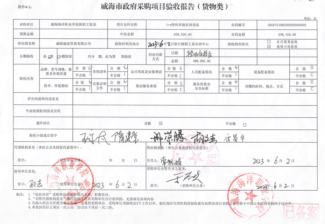七、验收小组成员名单:王永太、隋建堂、邢荣腾、胡文杰、岳昌华