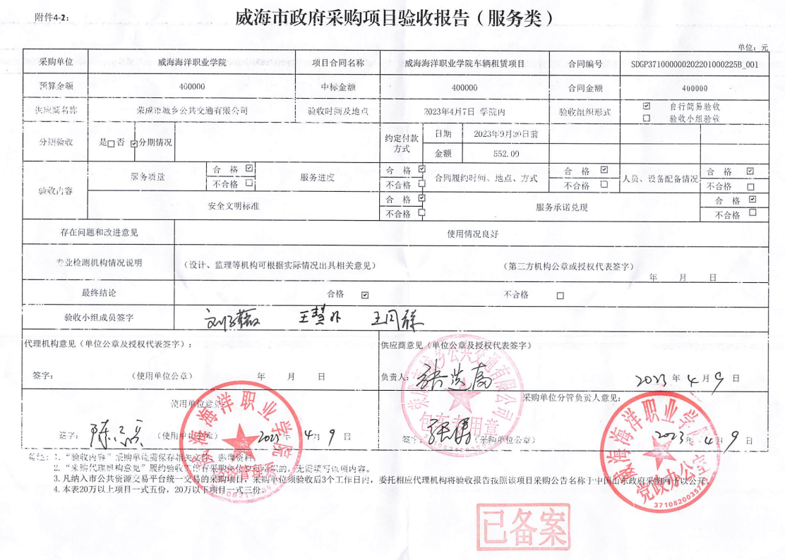 三、供应商名称:荣成市城乡公共交通有限公司