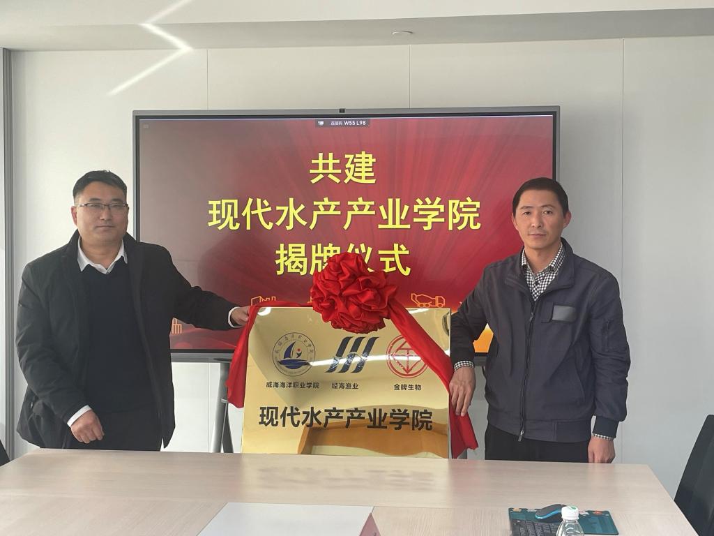 12月6日,由威海海洋职业学院与烟台经海海洋渔业有限公司、威海金牌生物科技有限公司联合共建的现代水产产业学院暨揭牌仪式在烟台经海海洋渔业有限公司举行。海洋生物系、对外合作处负责人出席仪式。