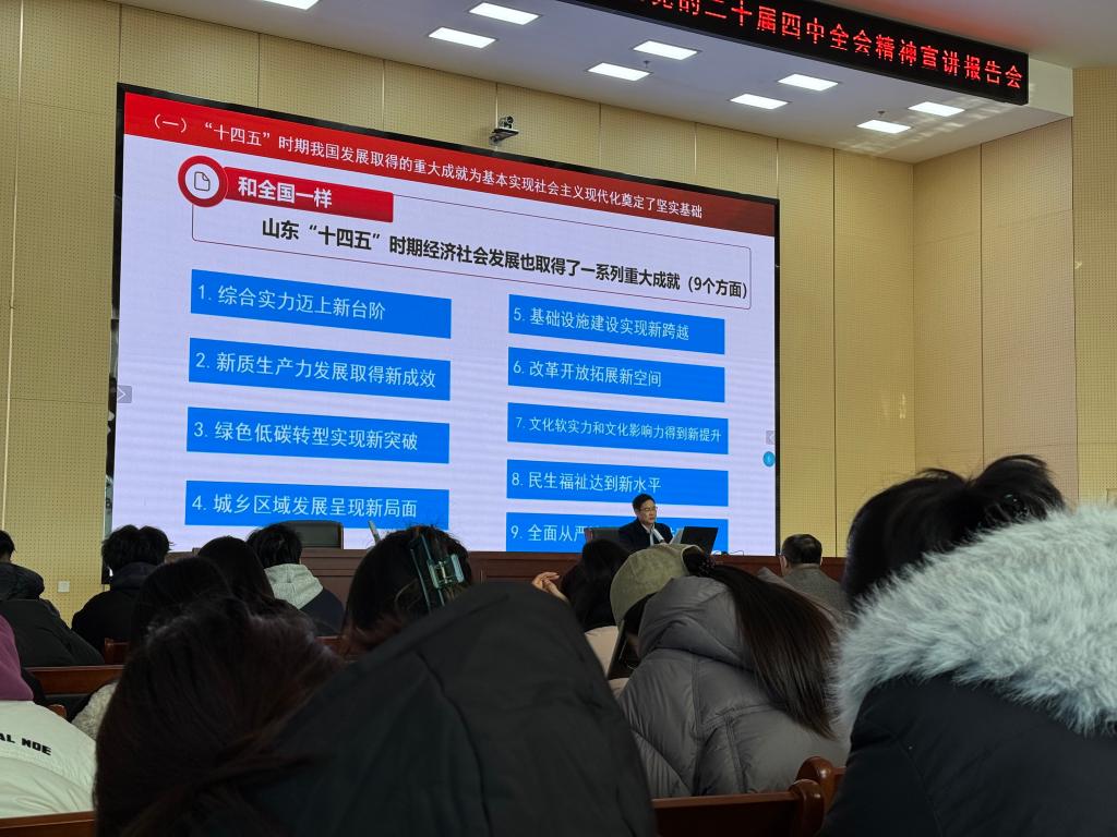 1月5日12点,海洋协同创新中心256会议室座无虚席,电子商务系“学习贯彻党的二十届四中全会精神”宣讲报告会在此举行。宣讲会由系党总支副书记汪健主持,学院党委委员、电子商务系党总支书记、主任童红兵作主旨宣讲,全系党员、教职工、入党积极分子、入团积极分子、学生干部等共200余人参会学习。