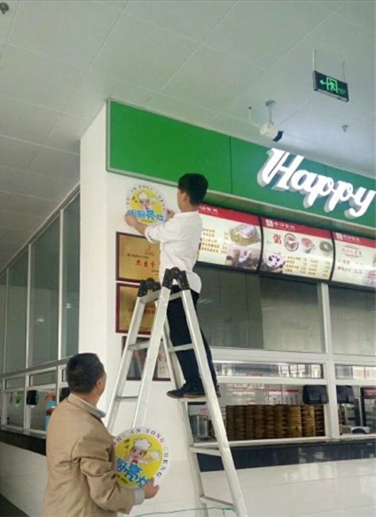 检查人员深入餐厅、厨房、库房(粮库、调味仓库等),认真检查食堂用水用电、环境卫生、食品卫生、消防消毒等情况。检查组每到一处都认真察看,听取食堂负责人的详细介绍。根据检查结果荣成市食品药品监督管理局授予威海海洋职业学院第二食堂中快餐厅“明厨亮灶”称号。