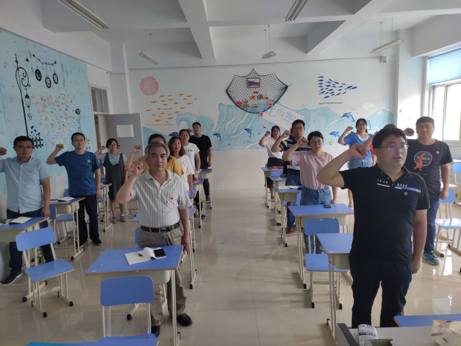 重温入党誓词,不忘入党初心。系党总支组织全体党员同志在明真楼302教室举行“峥嵘岁月,不忘初心”主题活动。活动中,全体党员向鲜红的党旗行注目礼,在党支部书记的领誓下,全体党员精神饱满、斗志昂扬的庄严宣誓,重温党的历史,感悟党的精神,进一步激励了全体党员坚守初心,勇担使命。随后,党支部组织委员对系党支部全体同志做了详尽党费交纳情况说明,并对部分同志提出的问题进行讲解。