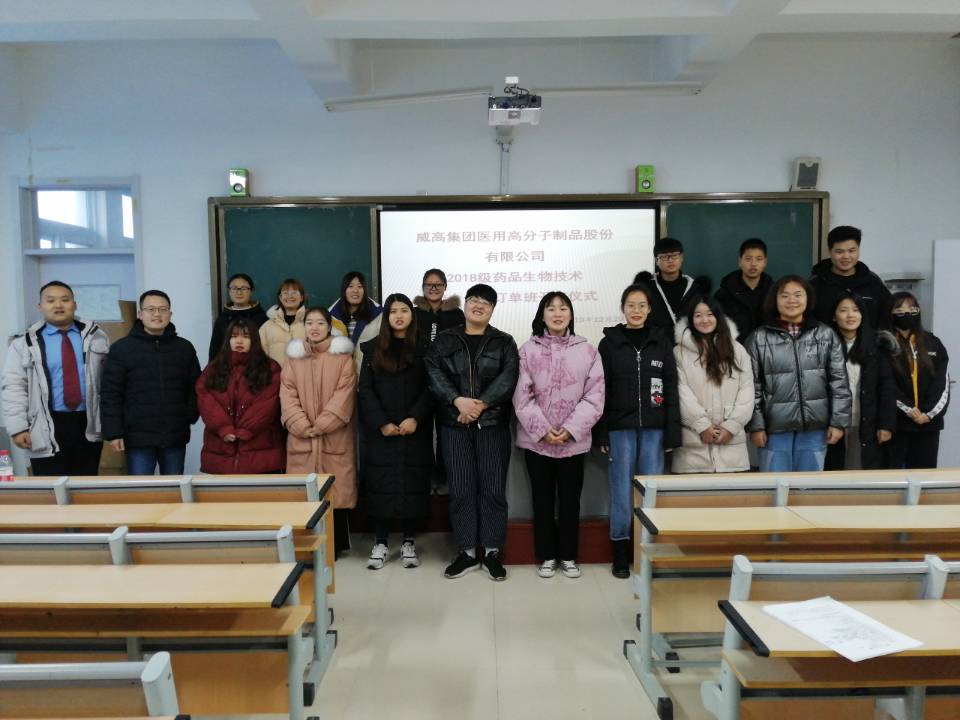 校企合作是企业与学校利用各自优势达到利益共享,互利共赢的一种合作模式。同时为学生提供学校不具备的实践平台,为学生提供更多的实习机会。12月29日我系在明真楼401举办威高集团医用高分子公司订单班开班仪式。