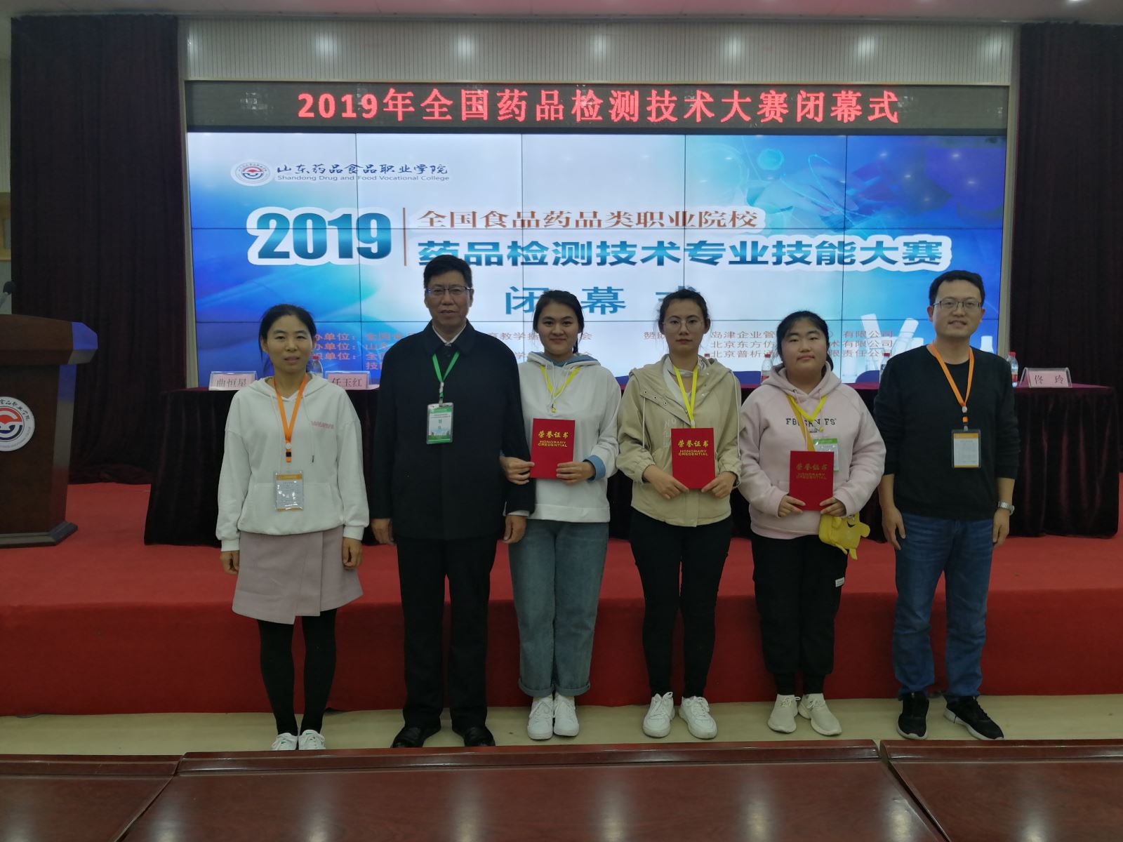 2019年全国食品药品类职业院校“药品技术检测”专业技能大赛于11月1日至3日在山东药品食品职业学院落下帷幕。我系由伍钧锋教授为领队,蔡舒爽等三名学生参加此次药品技术检测大赛。