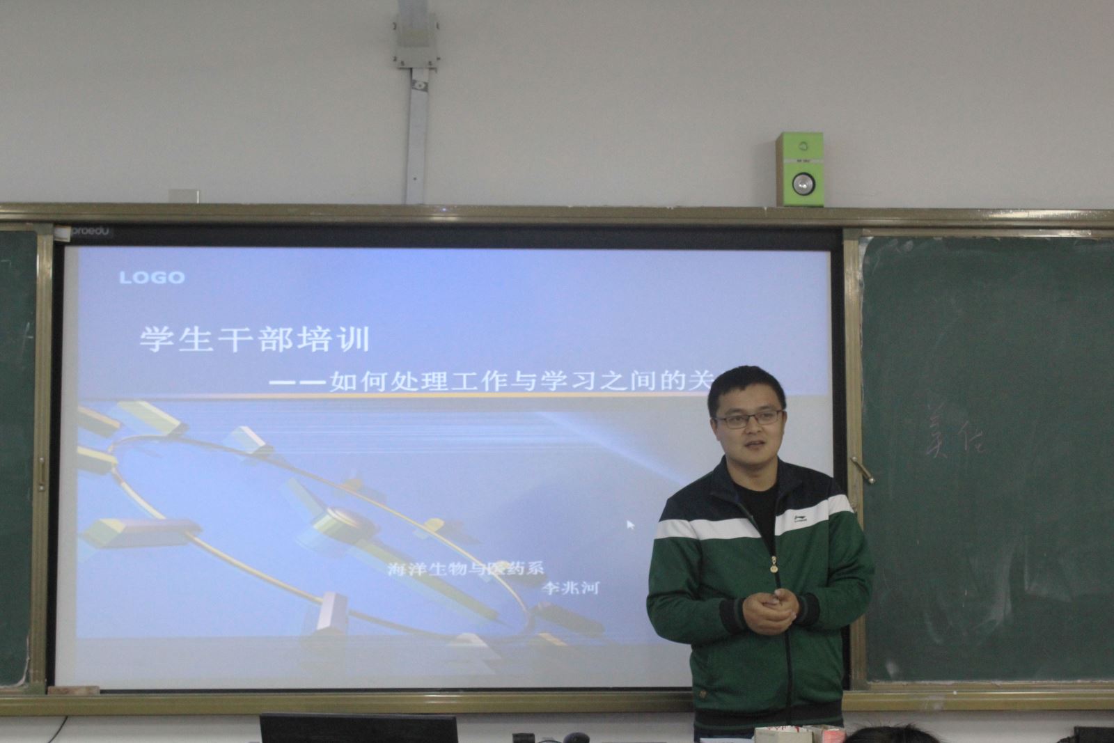 我系学工负责人李兆河老师以“如何处理工作与学习之间的关系”为题,为大家进行开班首讲。首先,李兆河老师以“为什么要读大学?”为切入,与大家展开热烈而真诚的恳谈。其次,根据现如今的情况逐步讲解上大学要干什么,分析上大学的意义,并向大家分享自身的亲身经历,强调学生会要以身作则,自觉遵守校规校纪,在学好专业课的同时把学生工作做好,进一步发挥学生组织的先锋模范带头作用。最后李兆河老师希望大家思考自己的现状,定好目标,明确好自己该如何处理好工作与学习之间的关系。李兆河老师讲话结束后,激起了同学们严格要求自己的决心。全场响起热烈的掌声,持续不断。