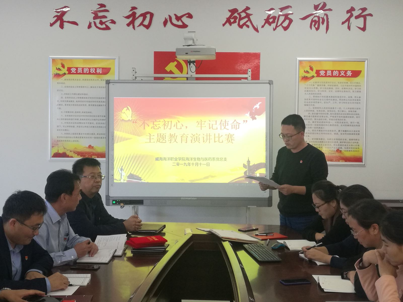 为了贯彻落实习近平总书记在十九大中提出“不忘初心、牢记使命”的工作精神,海洋生物与医药系党总支于10月11日在B1-213开展了“不忘初心、牢记使命”主题教育演讲比赛。党委副书记周承凯同志出席了此次活动。