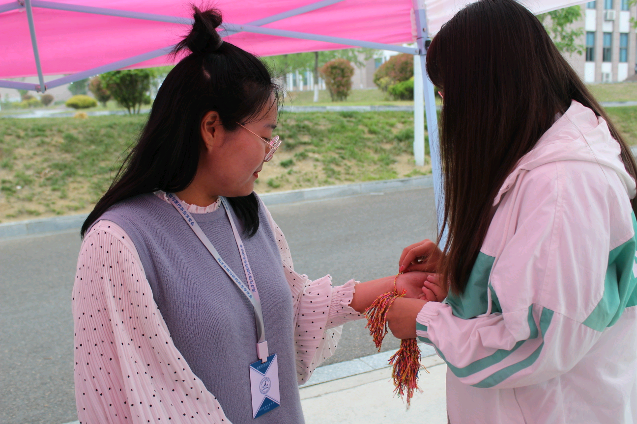 学生会成员为签完名字的同学送上有“驱魔辟邪、健康长寿”寓意的五彩绳,向他们送上关怀和问候。在整个活动过程中,充满欢声笑语,同学们的笑意写在脸上,心中也充满温暖。有的同学说:“每逢佳节倍思亲,这次活动不仅让他们在节日收到了小礼物,也切身感受到了节日独特的风俗文化,倍感温暖。”