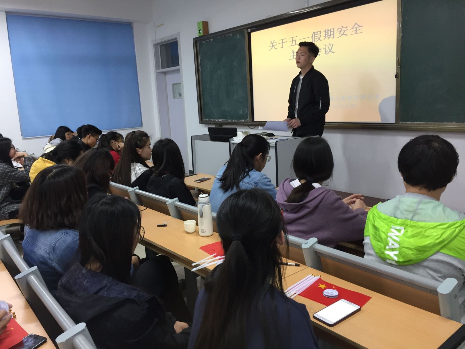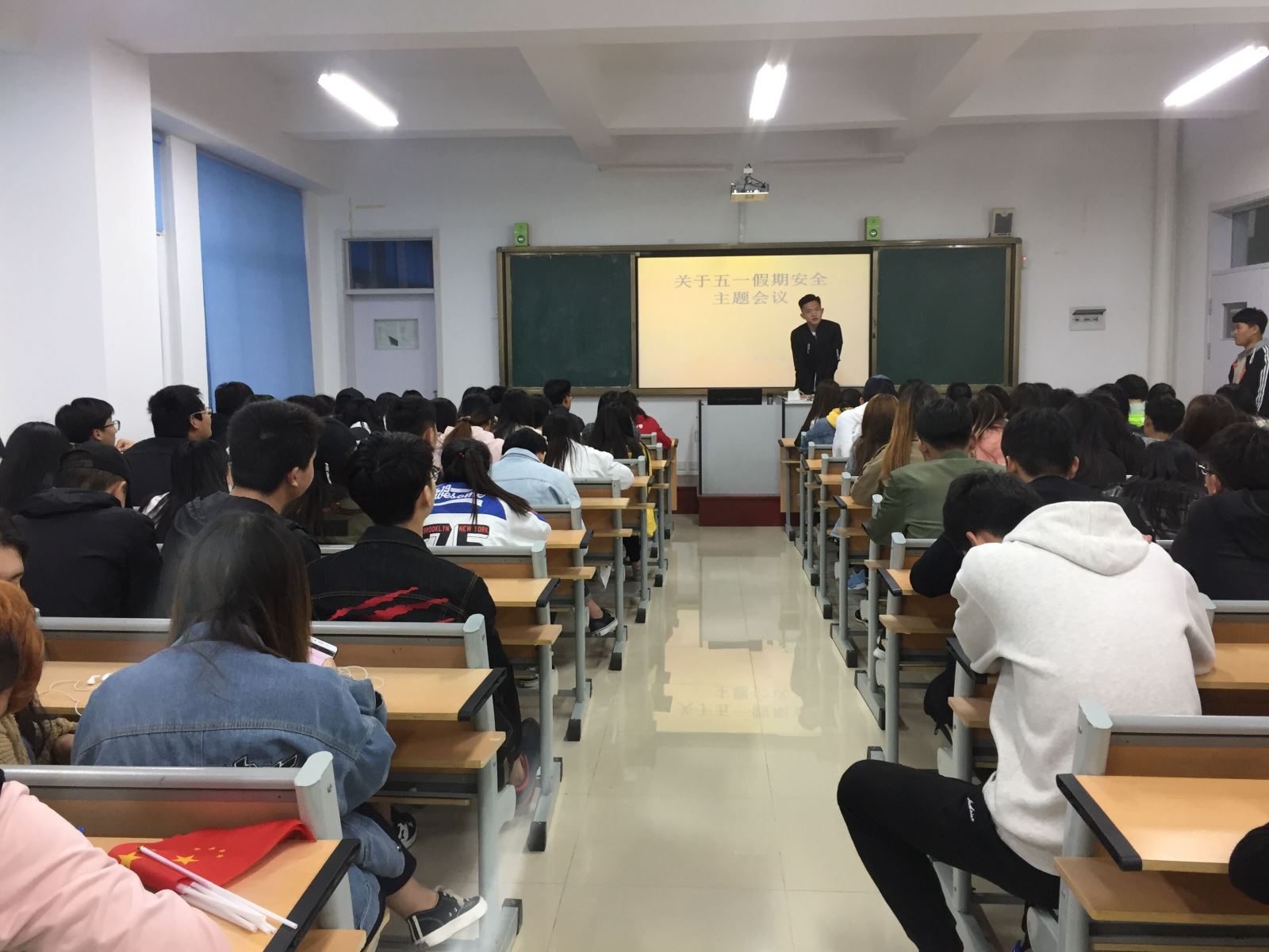 为贯彻落实“五一”长假期间学院对于学生安全教育及管理工作方面的要求,确保我系同学能够提高自我保护意识,度过一个安全愉快的假期。4月28日晚6点在我系合堂教室召开了“关于五一假期安全主题会议”,学生会主席姬广辉出席并主持本次会议。