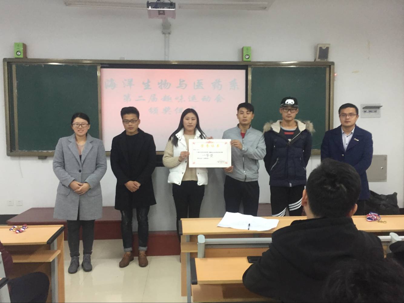 2017年11月16日傍晚6点30分,我系在明真楼401教室举行海洋生物与医药系第二届趣味运动会颁奖仪式,我系辅导员李兆河老师,马贵范老师共同出席了此次颁奖仪式。