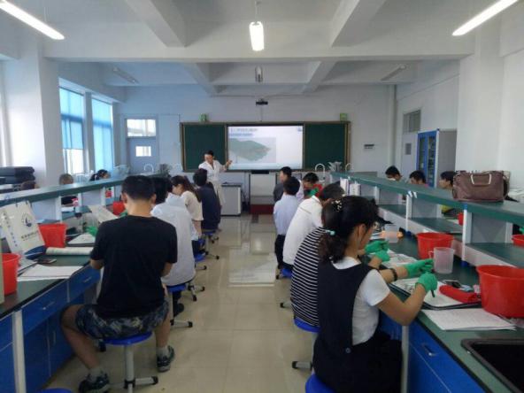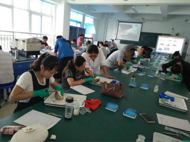 根据山东省渔业技术推广站的部署,本次师资培训主要对鲫鱼解剖、鲤鱼解剖、小龙虾解剖、日本对虾解剖、南美白对虾解剖和革兰氏染色剂及水产病害防治员理论等7个项目为期4天的技能培训,由于时间紧、任务重,海洋生物与医药系对这次培训高度重视,专业教师精心提前策划、精心组织,实施“黑加白”的高强度训练,按照培训学员的话“满载而归,包括热情友谊知识 技能”,效果良好。