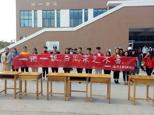 10月16日是第37个世界粮食日,本周是第27个全国爱粮节粮宣传周。为了响应爱粮节粮宣传周的号召,在10月19日上午海洋生物与医药系于第一食堂门举行了以“携手爱粮,勤俭节约”为主的爱粮节粮联名签字活动。