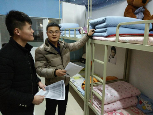 本次评比本着勤俭节约的原则,重点考察“宿舍的干净整洁、宿舍温馨和谐,宿舍高素质”这几个方面。检查过程中,物品摆放、床褥整理、卫生打扫是主要检查内容。各位评委都非常仔细,不放过每一个细节。从门口的储物柜,到屋内的书桌、床铺、衣柜都一一检查,对床架、门窗框、电源插座等学生们容易忽略的细节进行逐个查验,并用手摸一下窗台、房门和柜子顶部查看是否有灰尘,确保不放过一个死角,真正做到将内务工作落到实处。每看完一个房间,评委们就在评分表上填写检查分数,保证评比工作客观公正。