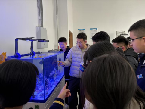 走进多彩的水族世界活动中,同学们怀着好奇与期待的心情,有序进入观赏水族馆。馆内五彩斑斓的鱼类、形态各异的珊瑚、生机盎然的水草造景缸,瞬间吸引了全体同学的目光,大家纷纷驻足观赏,沉浸式感受海洋水族生态的独特魅力。海洋生物系教师围绕海洋生物共生关系、观赏鱼养殖等核心内容,为同学们开展了细致且生动的科普讲解。老师结合水族馆内的活体展示,深入浅出地讲解珊瑚与虫黄藻的共生关系,揭秘二者相互依存、互利共生的生态奥秘,让同学们理解海洋生物间密不可分的生存联系。