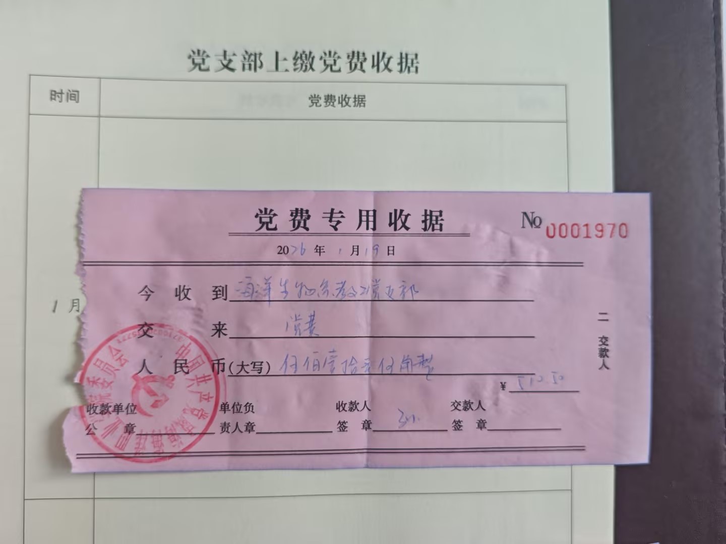 海洋生物系2026年2月份党费公...