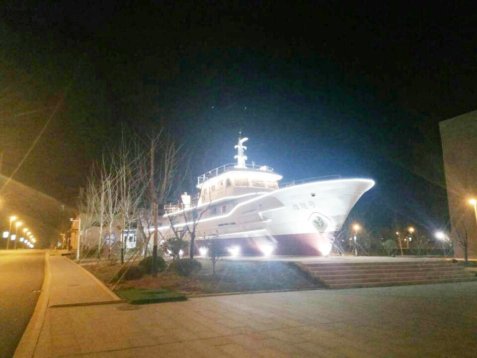 整个亮化区域包括图书馆、学术报告厅、体育馆、东大门、部分教学楼东侧面等建筑组成东部沿街亮化群,曜元楼、明睿楼、南大门等组成南部沿街亮化群,以及海院广场雕塑和海院号教学实训船两个亮化点。通过运行测试,学院对亮化区域提出修改意见并由施工单位整改完善,4月中旬组织专家小组对整个亮化工程进行了竣工验收。