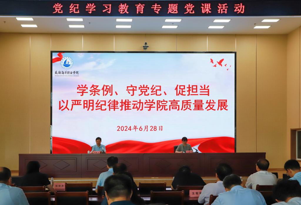 按照中央、省市委关于开展党纪学习教育工作部署,6月28日下午,学院组织开展党纪学习教育专题活动,党委书记吴宏飞为党员干部上专题党课。学院领导班子全体成员,各部门各单位主要负责同志及中层以上干部参加,学院党委委员、纪委书记谷建萍主持党课。