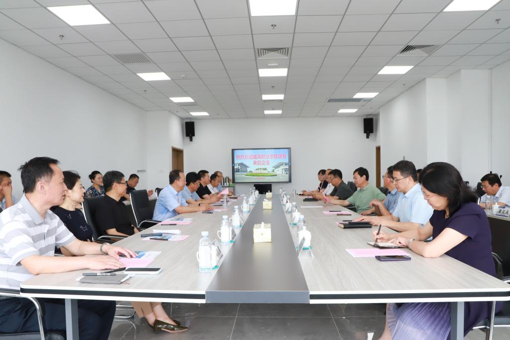 7月8日,威海职业学院党委书记李耀华、院长徐东晖一行到我院调研数字信息化建设、科研平台建设、双创工作、电商创业和明德学院建设等特色办学经验,学院党委书记吴宏飞、院长王星淘,党委领导班子成员及相关部门负责人参加活动。