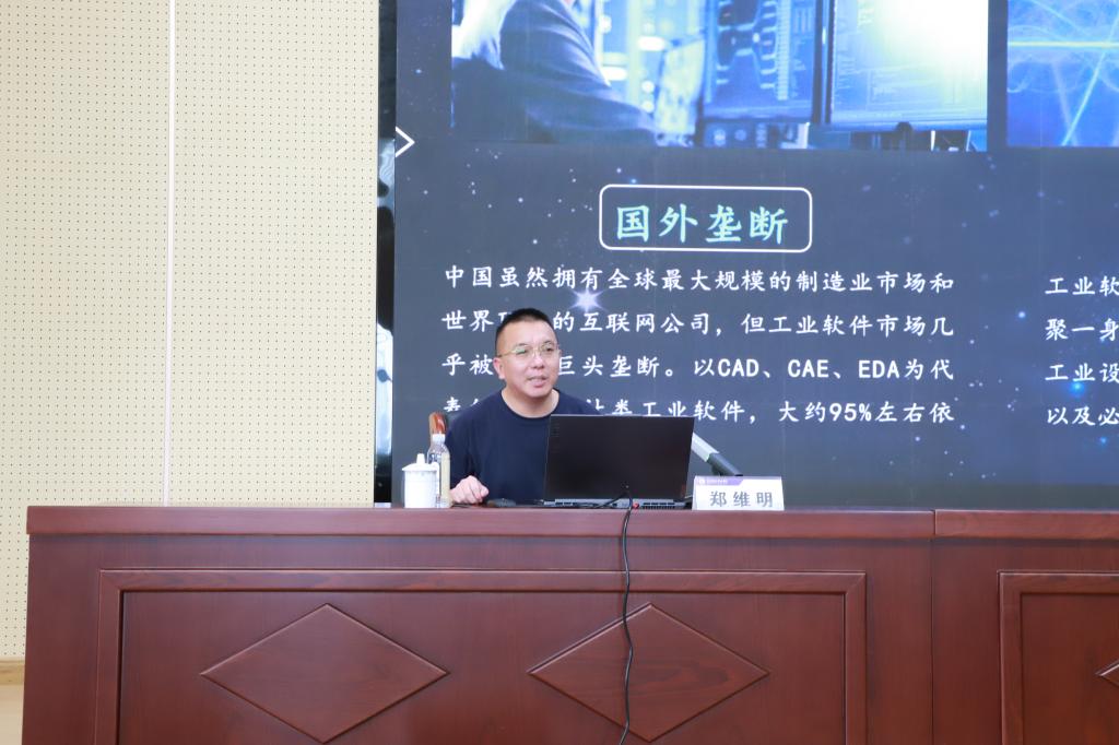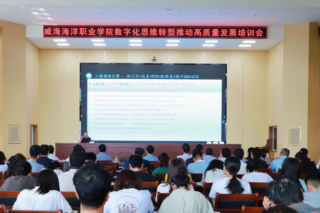 为重塑教职工数字化思维和认知,加快教育数字化转型,推动学院高质量发展,7月10日下午,学院邀请西门子智能制造产教融合课题研究组课题组副组长郑维明博士作“自主工业软件(数字孪生)研发概述”主题讲座。学院领导班子成员、各部门各单位主要负责人、中层以上干部、处室全体工作人员参加活动,活动由学院党委委员、副院长、组织人事处处长张华芹主持。