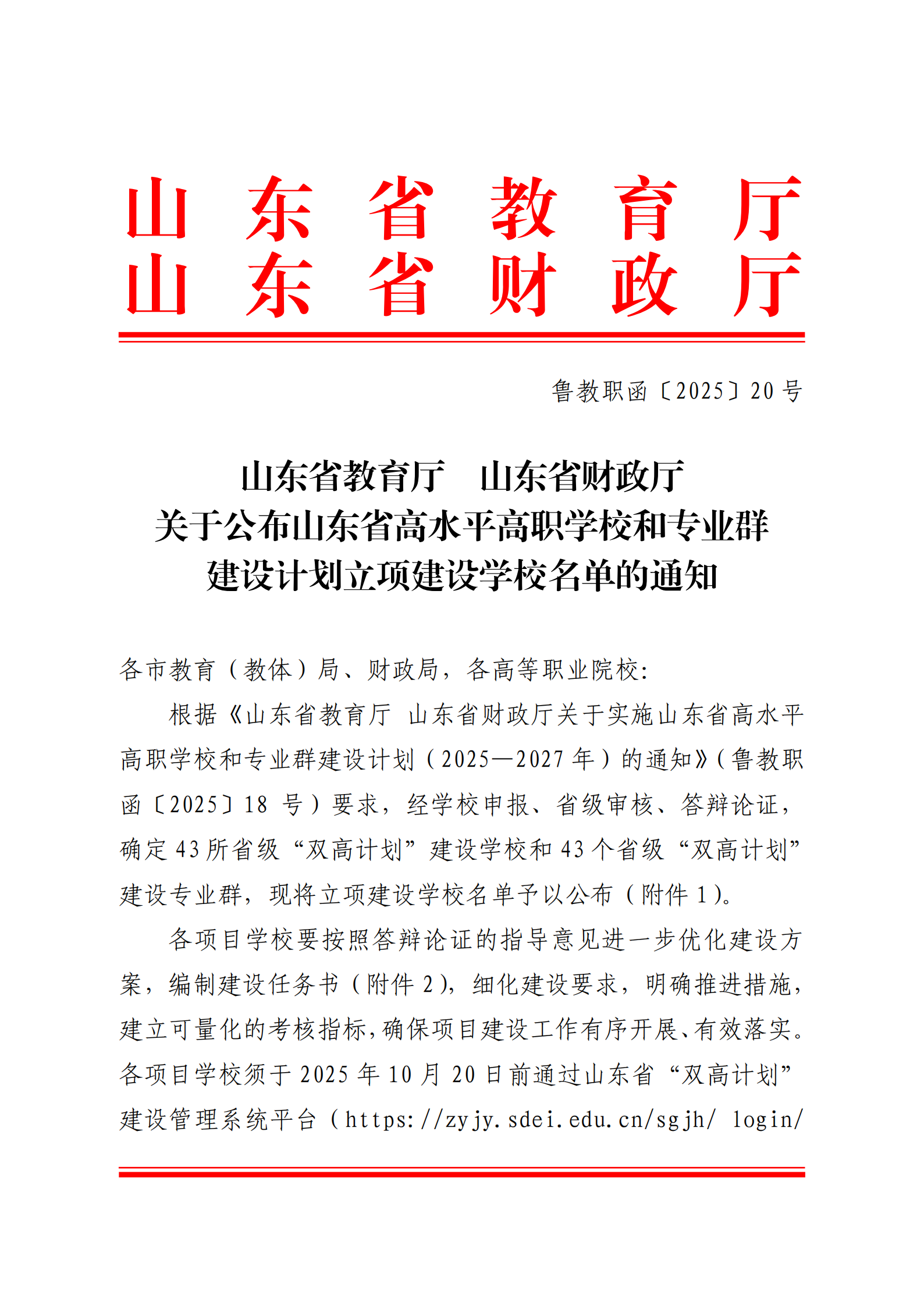 山东省高水平高职学校和专业群建设计划是省教育厅、省财政厅为深入贯彻落实国家职业教育改革部署,着力打造一批引领改革、支撑发展、具有中国特色和世界水平的高职院校的重要举措。