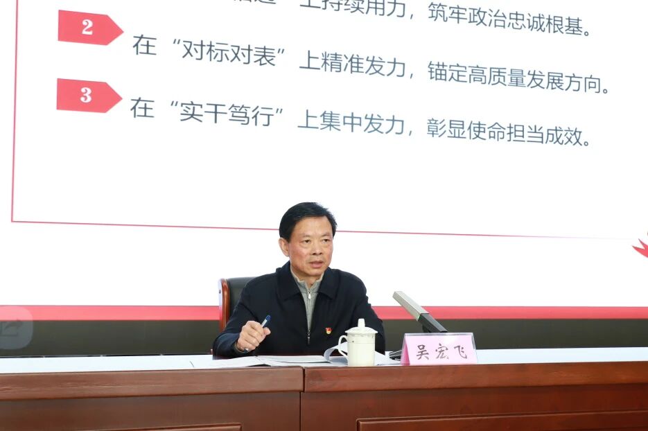 吴宏飞强调,党的二十届四中全会是在即将进入基本实现社会主义现代化夯实基础、全面发力的关键时期召开的一次十分重要的会议。要把学习贯彻全会精神同学习领会习近平新时代中国特色社会主义思想贯通起来,始终在思想上政治上行动上同党中央保持高度一致,深刻领悟“两个确立”的决定性意义,增强“四个意识”、坚定“四个自信”、做到“两个维护”,为基本实现社会主义现代化而共同奋斗,不断开创以中国式现代化全面推进强国建设、民族复兴伟业新局面。