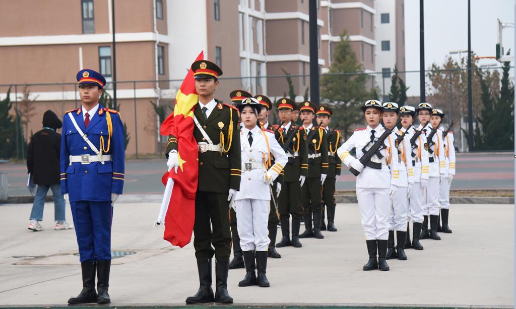 12月9日早,机电工程系大一新生及部分18级学生在学校东操场举行升旗仪式。