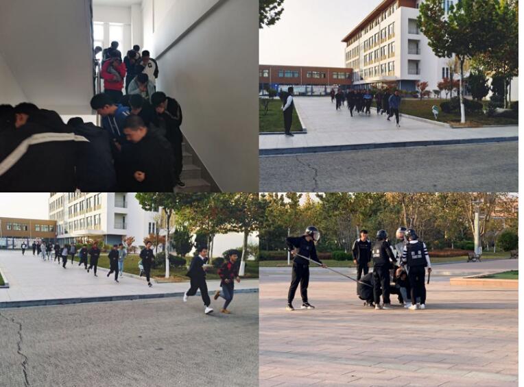 下午3点30分,随着一阵尖锐而又急促的地震警报声响起,所有学生按照学工部防震演练预案要求,沉着冷静,井然有序的利用课桌,书包等有效的进行自护,各班级打开教室前后门,在老师的指挥下,每位学生双手护住头部,弯腰迅速、有序、安全地从教室向东操场撤退。此次演练顺利完成,整个演练过程师生互助、配合默契,学生动作敏捷规范,短短几分钟就展现出机电学子沉着冷静、团结严明的精神风貌。随后,保卫科工作人员进行了防暴展示。
