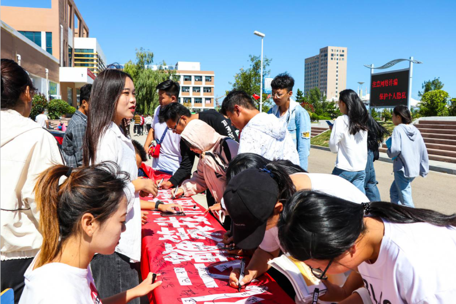 为警示师生牢记历史、勿忘国耻、珍爱和平,9月18日上午10:00,我院在一食堂与二食堂门口开展了“勿忘九一八”主题签字活动,号召全校师生铭记国难、振兴中华。