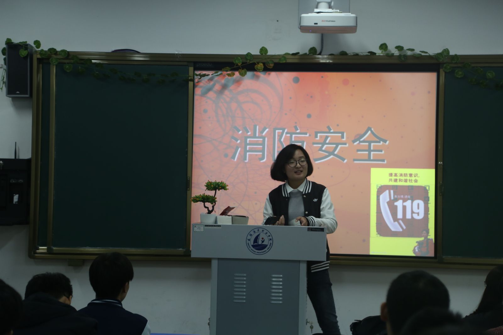 三、组织“增强消防意识,掌握逃生技巧”消防安全系列活动。 为提高师生们对消防安全的重视,11月9日“消防日当天”我系举行了紧急疏散演练及消防安全知识讲座。荣成市消防大队张老师为师生们讲解了火灾的预防及遇到火灾后如何有效逃生,图文结合、声色并茂、内容丰富,并组织了紧急疏散演练,切实增强消防意识,掌握逃生方法。