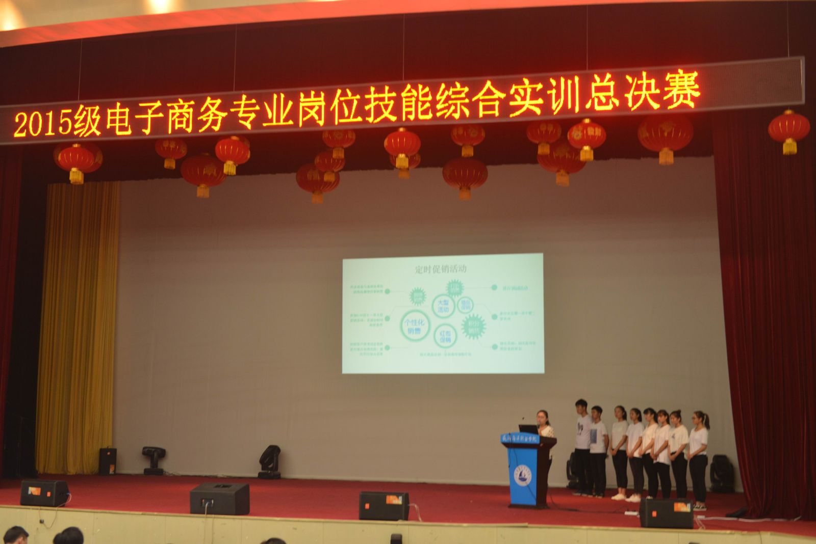经过一个学期的努力,信息工程系“2015级电子商务专业岗位技能综合实训总决赛”在学术报告厅正式拉开帷幕。本次由初赛脱颖而出8个团队参与角逐总冠军。上海途歌电子商务公司、荣成市云帆电子商务公司的经理及泰祥集团CBO电商海职院园区部分指导老师、电商教研室主任作为评委出席决赛现场。