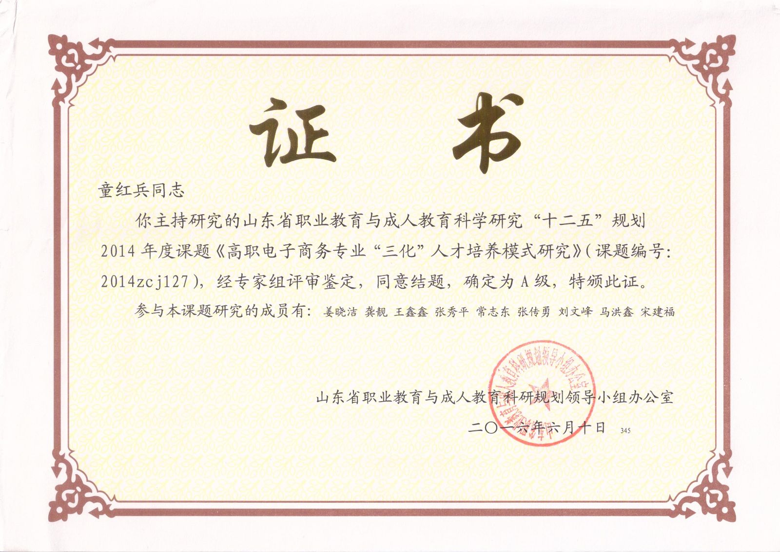 日前,信息工程系负责人童红兵主持的山东省职业教育与成人教育科研“十二五”规划课题《高职电子商务专业“三化”人才培养模式研究》(课题编号:2014zcj127)顺利通过省专家组结项鉴定,鉴定结果为A级。
