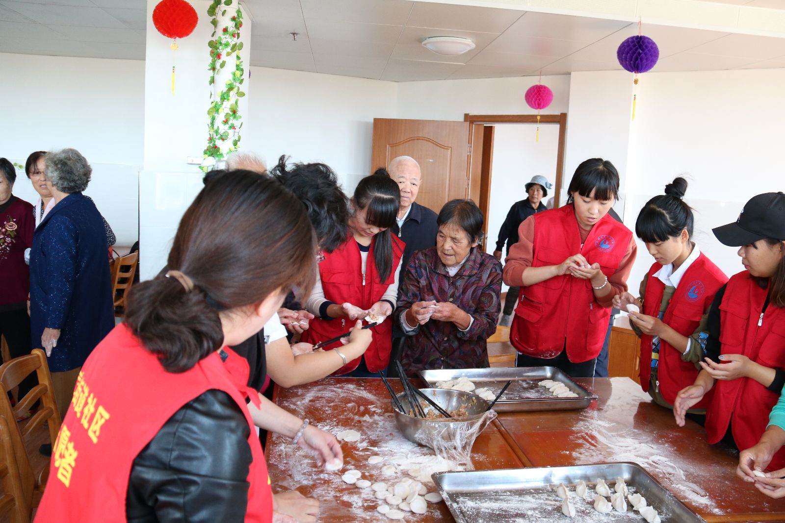 9日上午,志愿者们带着满满的祝福抵达荣成市社会福利中心,在工作人员的带领下走进了老人的房间,与他们拉家常、下围棋、收拾房间,房间里不时传出阵阵笑声。休息过后,大家分工合作,洗菜、剁馅、和面、擀饺皮、包饺子,虽然饺子的形状千奇百怪,有口袋状,阶梯状,饼状的……但是通过辛劳得到的成果比什么都欣慰,满满的爱意和暖流在餐厅内流淌传递。不一会儿,一碗碗热气腾腾、香味扑鼻的饺子就摆在了老人们的面前,老人们喜笑颜开地吃着饺子,口中还一直念叨着感谢之言。