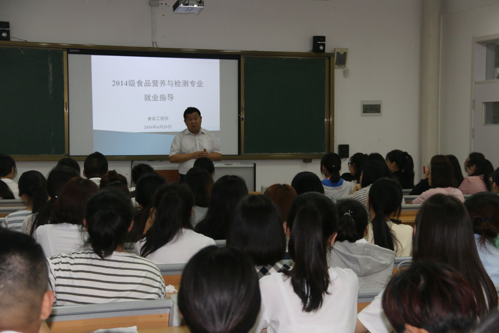 为帮助学生明确就业目标,树立正确的择业观,指导学生顺利实习和预就业,食品工程系组织2014级食品营养与检测专业全体学生开展了实习就业指导。