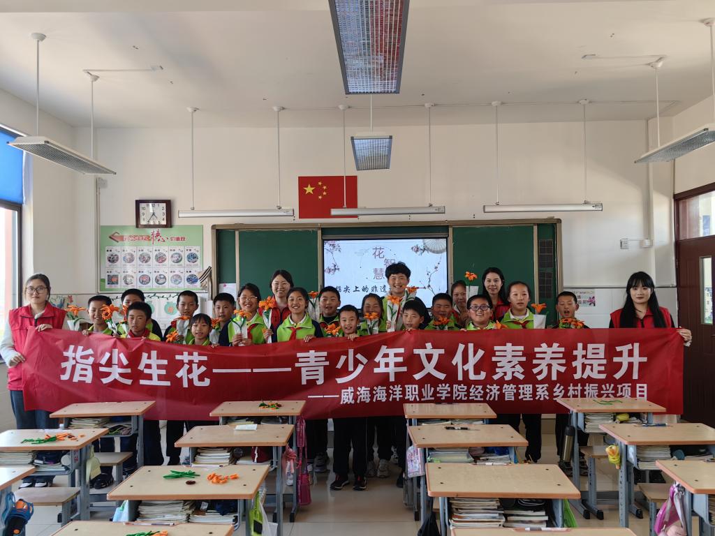 5月8日,经济管理系选派教师团队赴荣成市第十五中学开展主题为“指尖生花——青少年文化素养提升”的非遗珍萃学习活动,此次活动是经济管理系2024年乡村振兴项目系列活动之一,旨在通过绒花工艺展示,让青少年们感受中国非物质文化遗产的魅力,弘扬中华优秀传统文化。