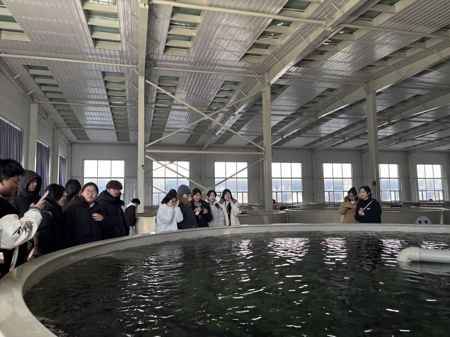 在技能大师工作室的牵头组织与全程参与下,师生们深入企业生产一线,实地参观了循环水养殖车间、育苗培育区、饲料生产车间及研发实验室等核心区域。工作室的领衔大师及团队成员,充分发挥其在技术实践与行业对接方面的优势,在现场结合企业实际生产场景,为学生们进行了关键工艺流程、技术要点及行业标准的深入讲解与示范。 这种“大师引领、现场教学”的模式,使学生们对三文鱼等高端水产生物的现代化养殖技术、生产管理及行业发展趋势有了更为直观和深刻的理解。在交流座谈会上,双方基于技能大师工作室已有的合作基础,进一步探讨了共建长期稳定的实习实训基地、合作开发实践课程、定向输送专业技术人才等具体合作方向,并达成初步共识。