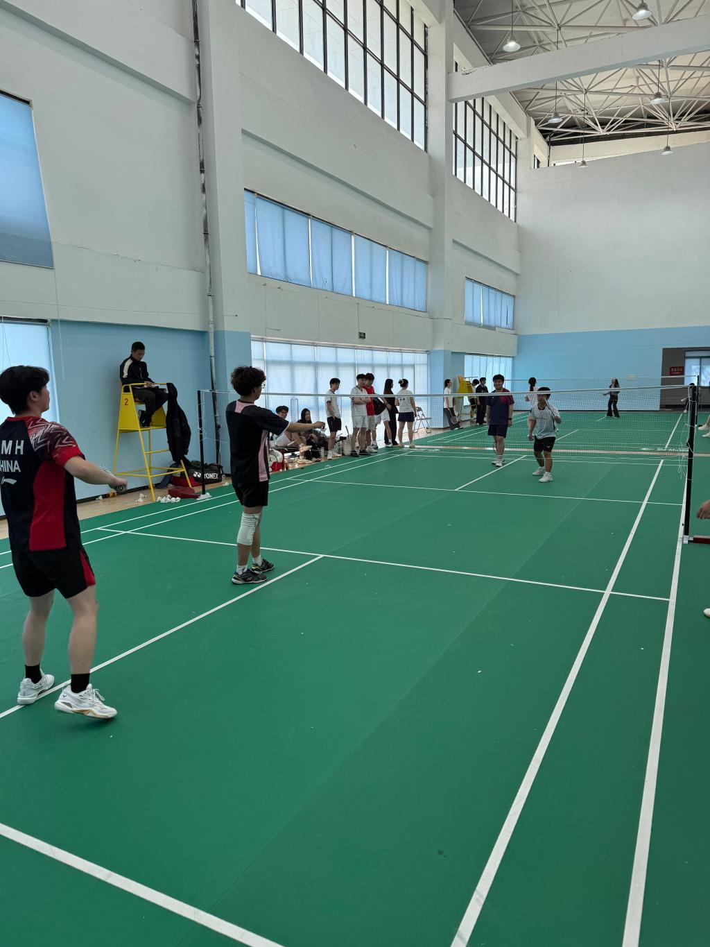 羽毛球赛场上,速度与技巧碰撞。5位选手沉着应战、灵活走位,网前轻吊、后场扣杀、精准防守,每一次挥拍都尽显扎实功底。双打比赛中,搭档间配合默契、攻守转换流畅,巧妙化解对手攻势,抓住机会果断得分。选手们精湛的球技和良好的体育道德风尚赢得了现场观众的阵阵掌声,最终斩获男子团体第一名、男女团体总成绩第二名的优异成绩。