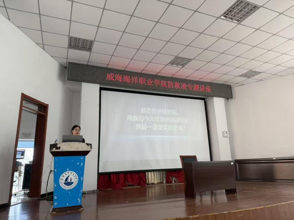 普法讲座护航青春成长。4月15日下午,学生处联合荣成市检察院开展国家安全暨法治宣传专题讲座,检察人员结合高校真实涉诈案例,深入剖析诈骗案件的特点与防范要点,进一步深化同学们的反诈认知和防范能力;结合校园欺凌典型案例,明确校园欺凌的法律界定与法律责任,详细讲解识别、应对校园欺凌的方法技巧,引导同学们友好相处、互敬互爱,学会运用法律武器守护自身合法权益。