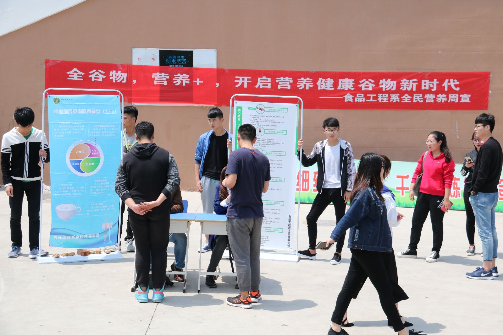 一是开展健康饮食咨询活动。在第一食堂门口举行以“全谷物营养+开启营养健康谷物新时代”为主题的健康饮食咨询会,同学们积极向食品系老师咨询关于饮食健康方面的问题,再经过老师们一一解答并提出了改善建议后,同学们纷纷表示以后要多注意自身饮食健康。此次活动不仅使同学们掌握了一些饮食健康小知识,也让同学们明白了饮食健康的重要性。
